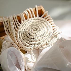 Prefect decor for your home:This basket is full of bohemian style.It will perfectly match the bohemian home decor.The combination of cotton rope and wood is warm and elegant.Practical and aesthetic at the same time.