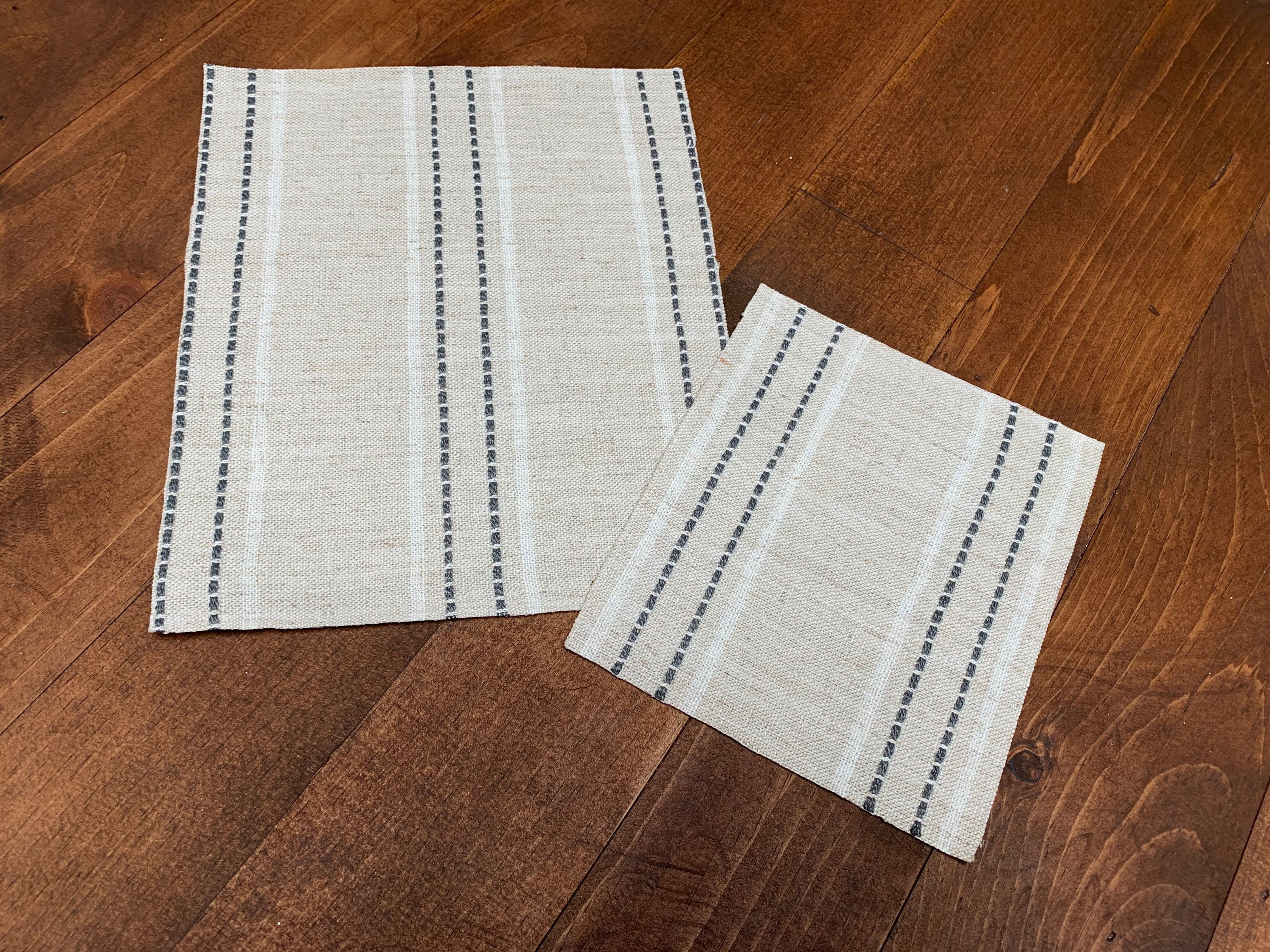 Dollhouse miniature area rug in a light tan woven pattern with charcoal and white lines. Add some warmth and texture to your living or dining room decor with this thick textured fabric. It comes in 4 standard sizes, but if you need a custom size, please message me.
