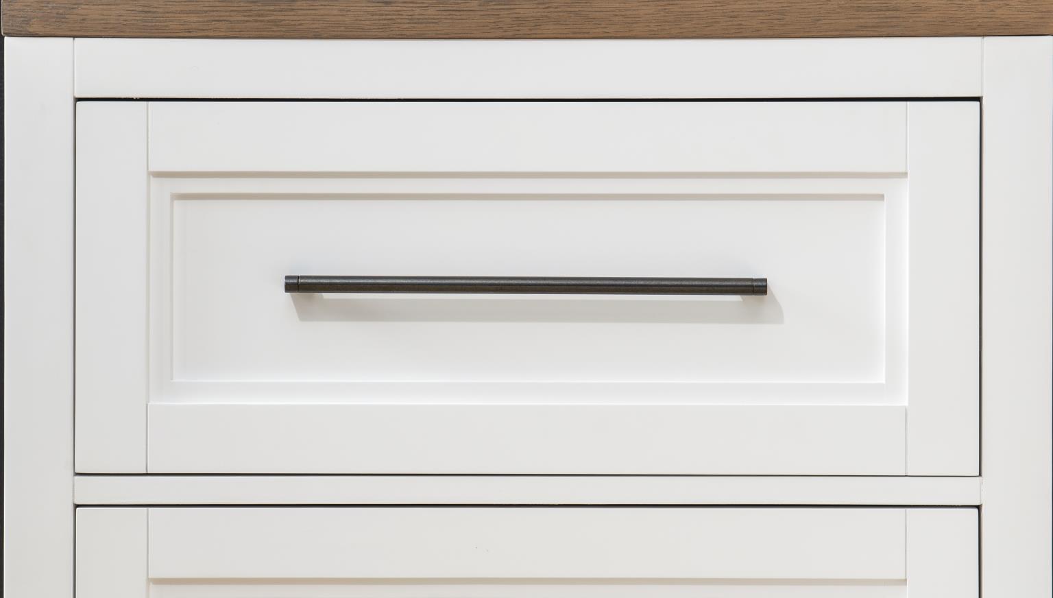 - Crafted of Select Hardwoods with Quartered White Oak and Paint Grade Veneers