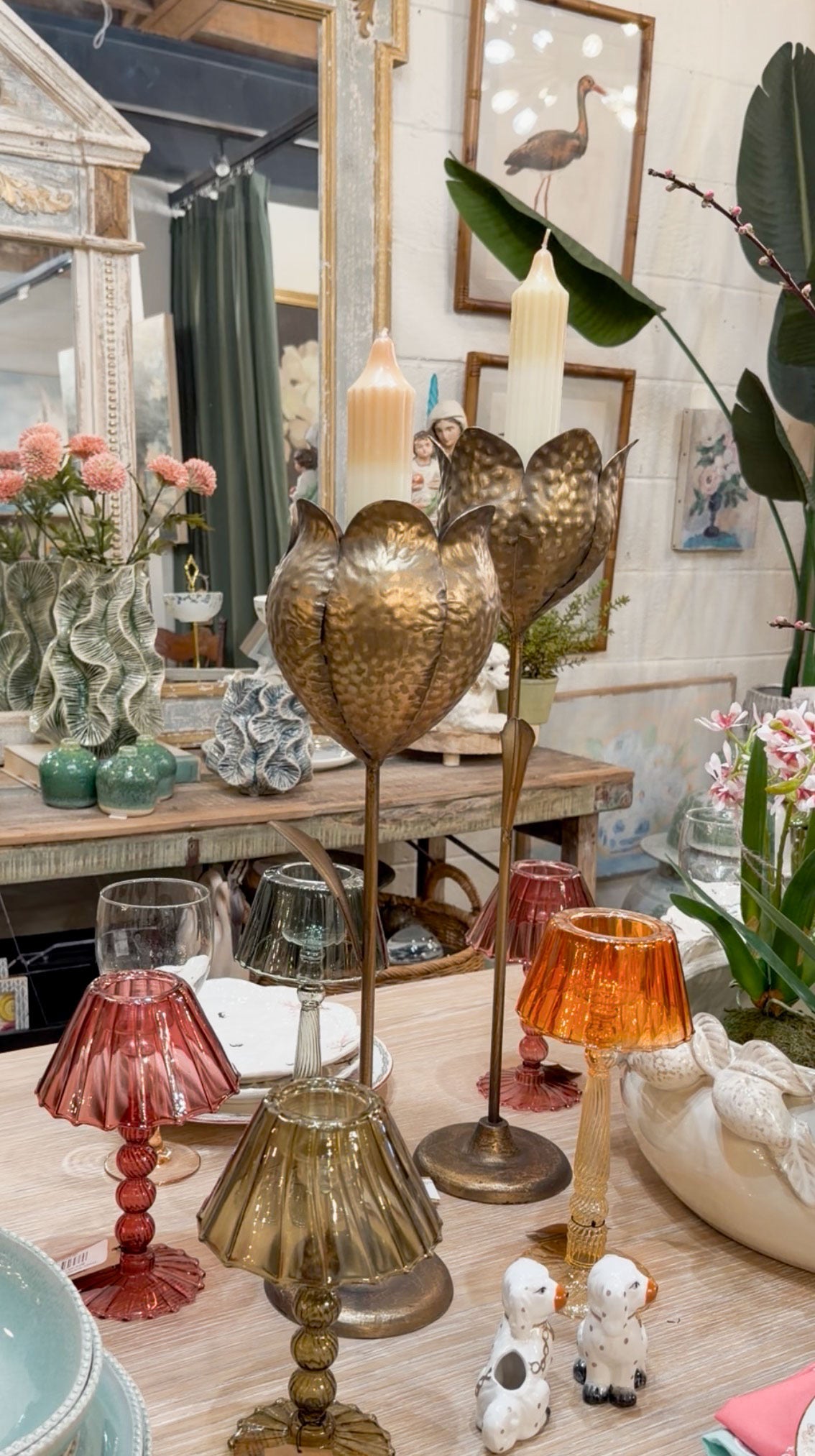 These brass tulip sculptures stand tall with long stems and delicately shaped blooms. Their antique finish brings warmth and softness, making them lovely accents for bookshelves or console tables. A graceful style that feels both artistic and natural.